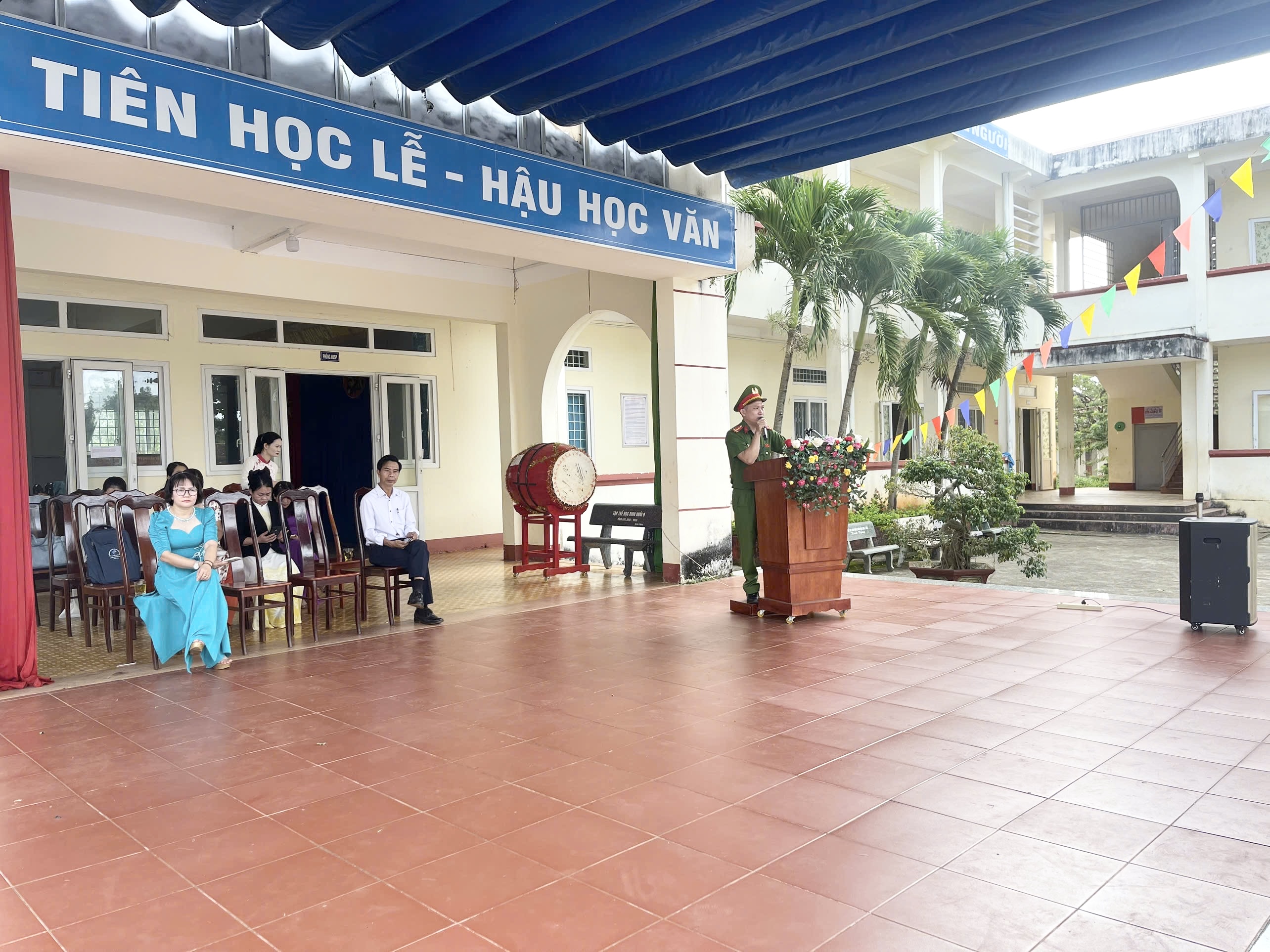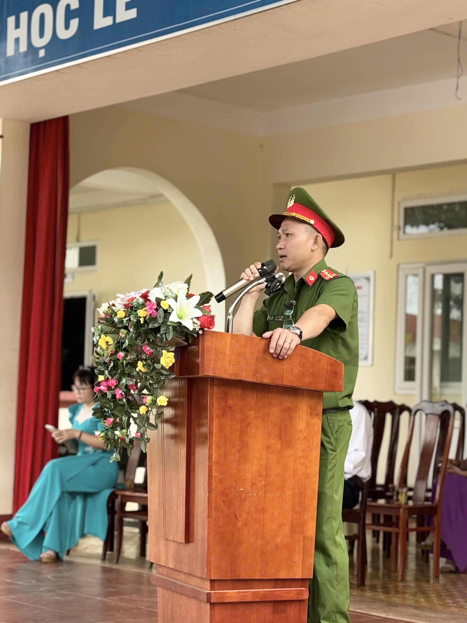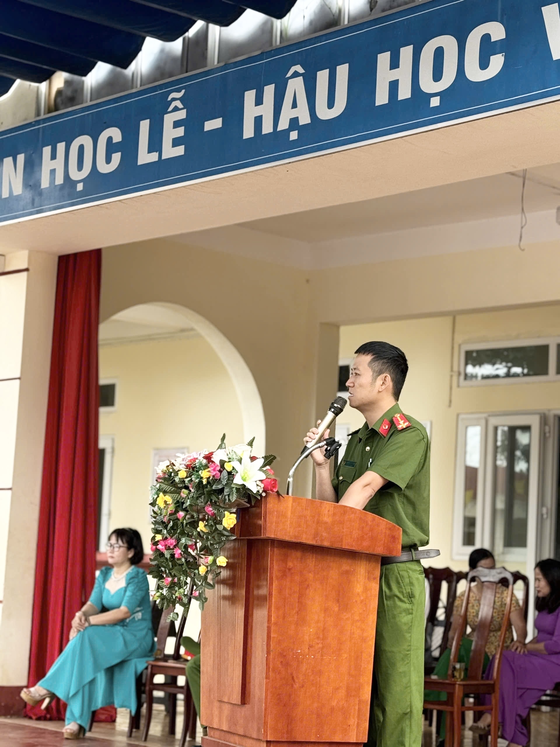 Phát biểu tại buổi sinh hoạt, thầy Trần Văn Tuấn- Hiệu trưởng nhà trường – đại diện Ban Giám hiệu nhà trường, đã gửi lời cảm ơn chân thành đến lực lượng Công an xã Ea Ktur đã luôn quan tâm, đồng hành cùng nhà trường trong công tác giáo dục thế hệ trẻ. Thầy Tuấn cũng nhấn mạnh, việc trang bị kiến thức pháp luật là vô cùng cần thiết, giúp các em tự bảo vệ mình và trở thành những công dân có ích cho xã hội.