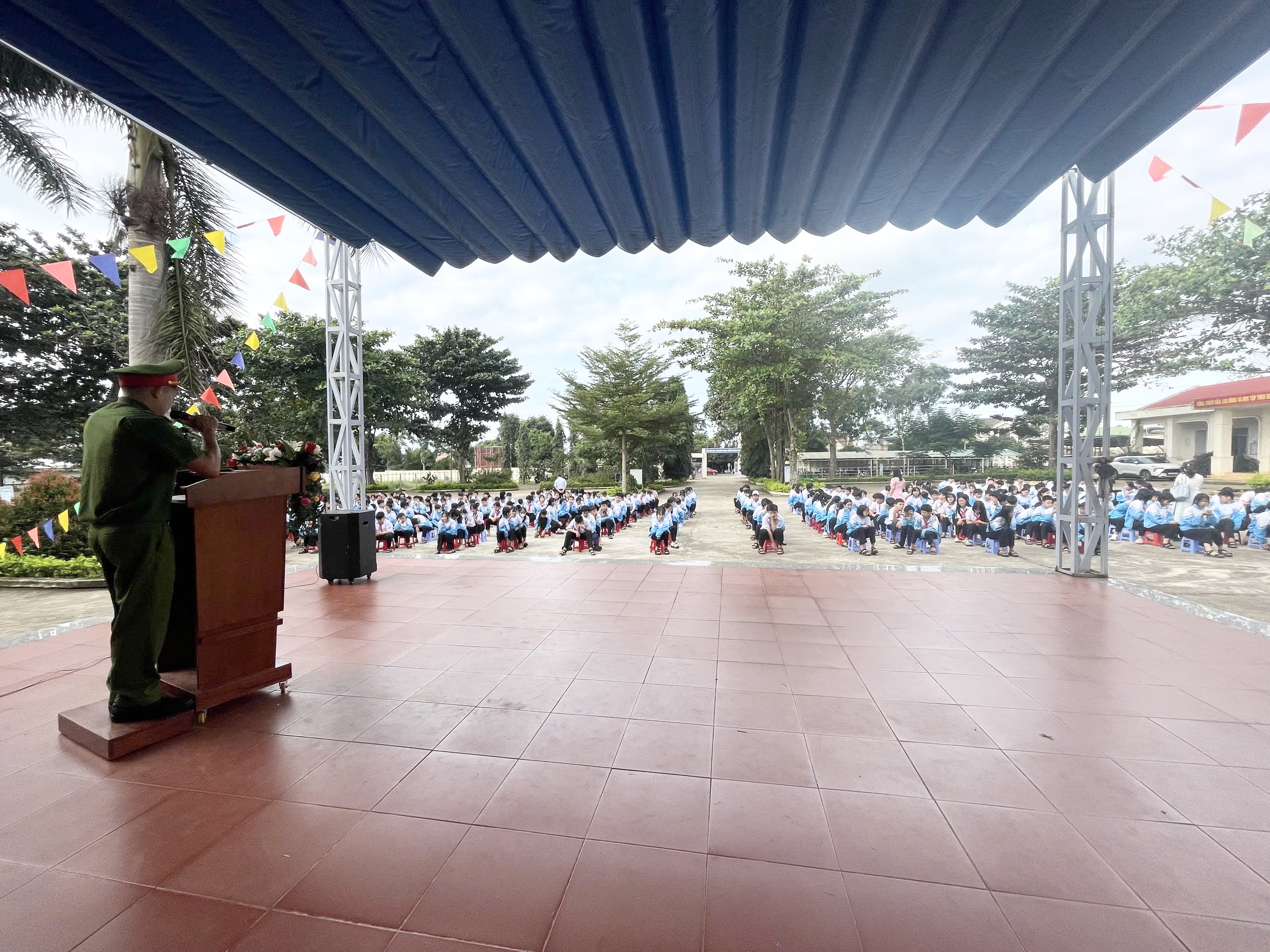 Sáng ngày 10/11/2025, trong không khí trang trọng của buổi sinh hoạt dưới cờ đầu tuần, Trường THCS Việt Đức đã phối hợp chặt chẽ với Công an xã Ea Ktur tổ chức buổi tuyên truyền, giáo dục pháp luật cho toàn thể cán bộ, giáo viên và các em học sinh.