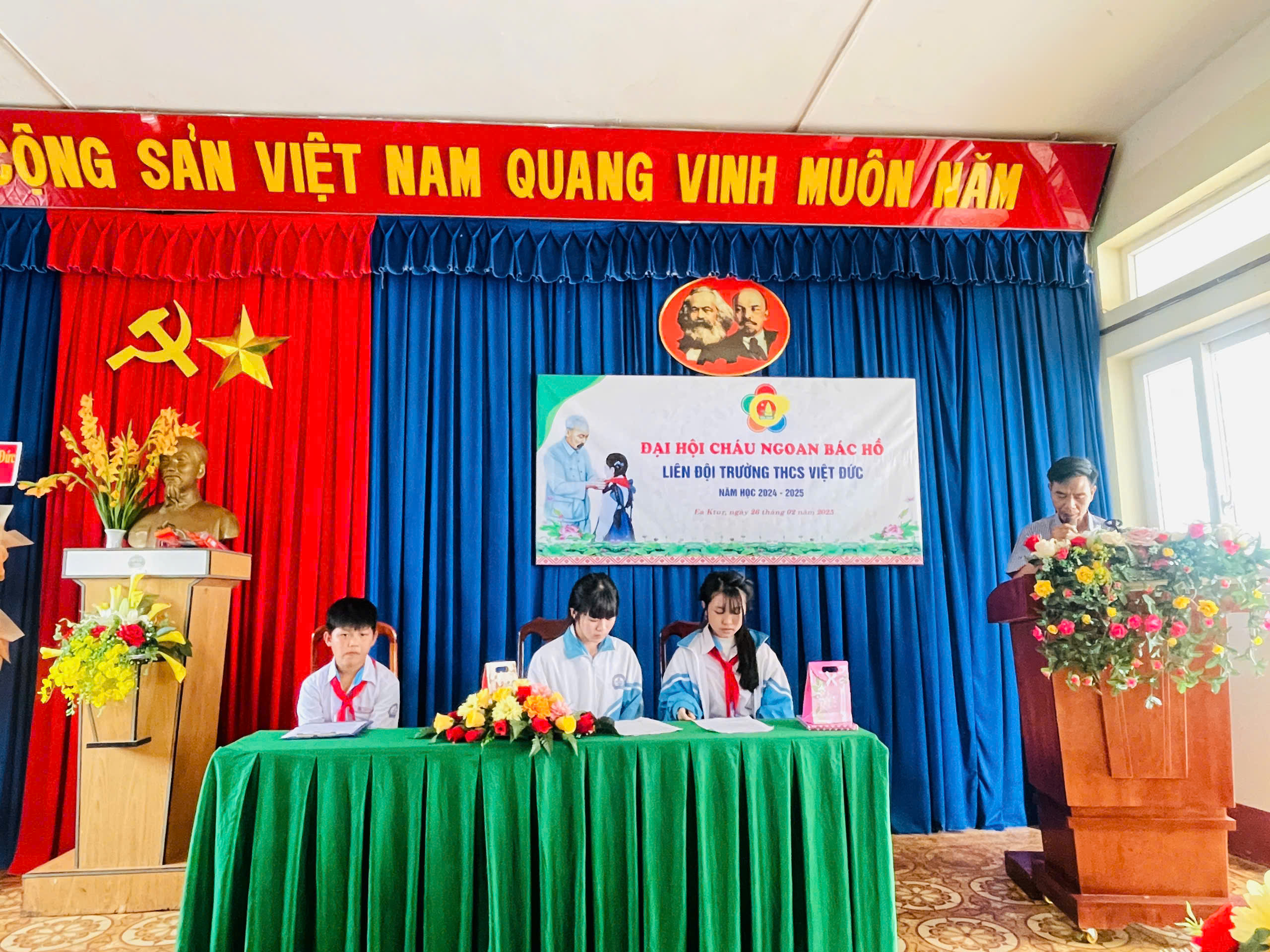 Liên đội Trường THCS Việt Đức long trọng tổ chức Đại hội Cháu ngoan Bác Hồ nhằm tuyên dương những đội viên, nhi đồng có thành tích xuất sắc trong học tập, rèn luyện và hoạt động Đội. Đây là dịp để các em ôn lại những lời dạy của Bác Hồ kính yêu, từ đó tiếp tục phấn đấu, tu dưỡng đạo đức để trở thành con ngoan, trò giỏi, cháu ngoan Bác Hồ.