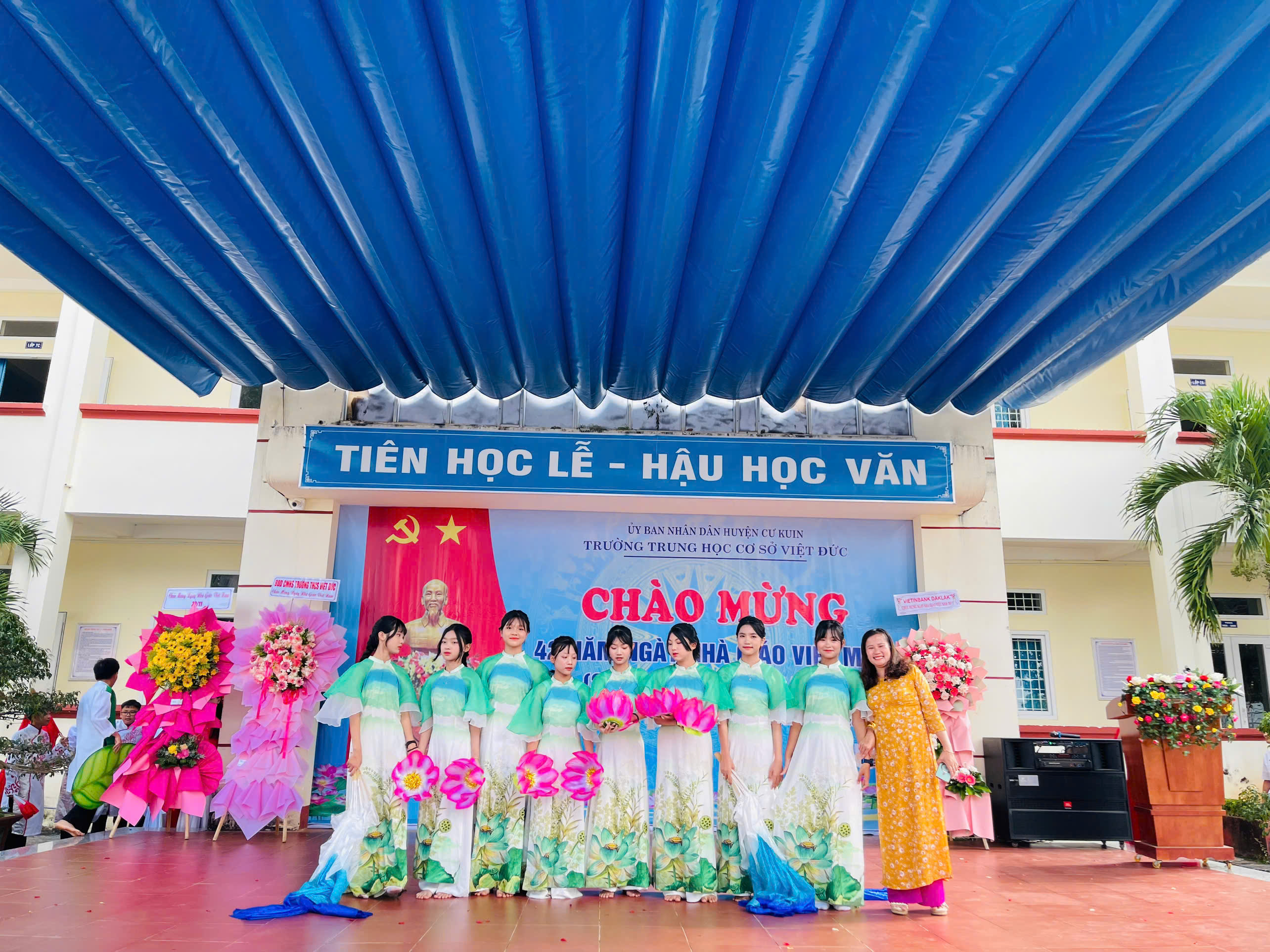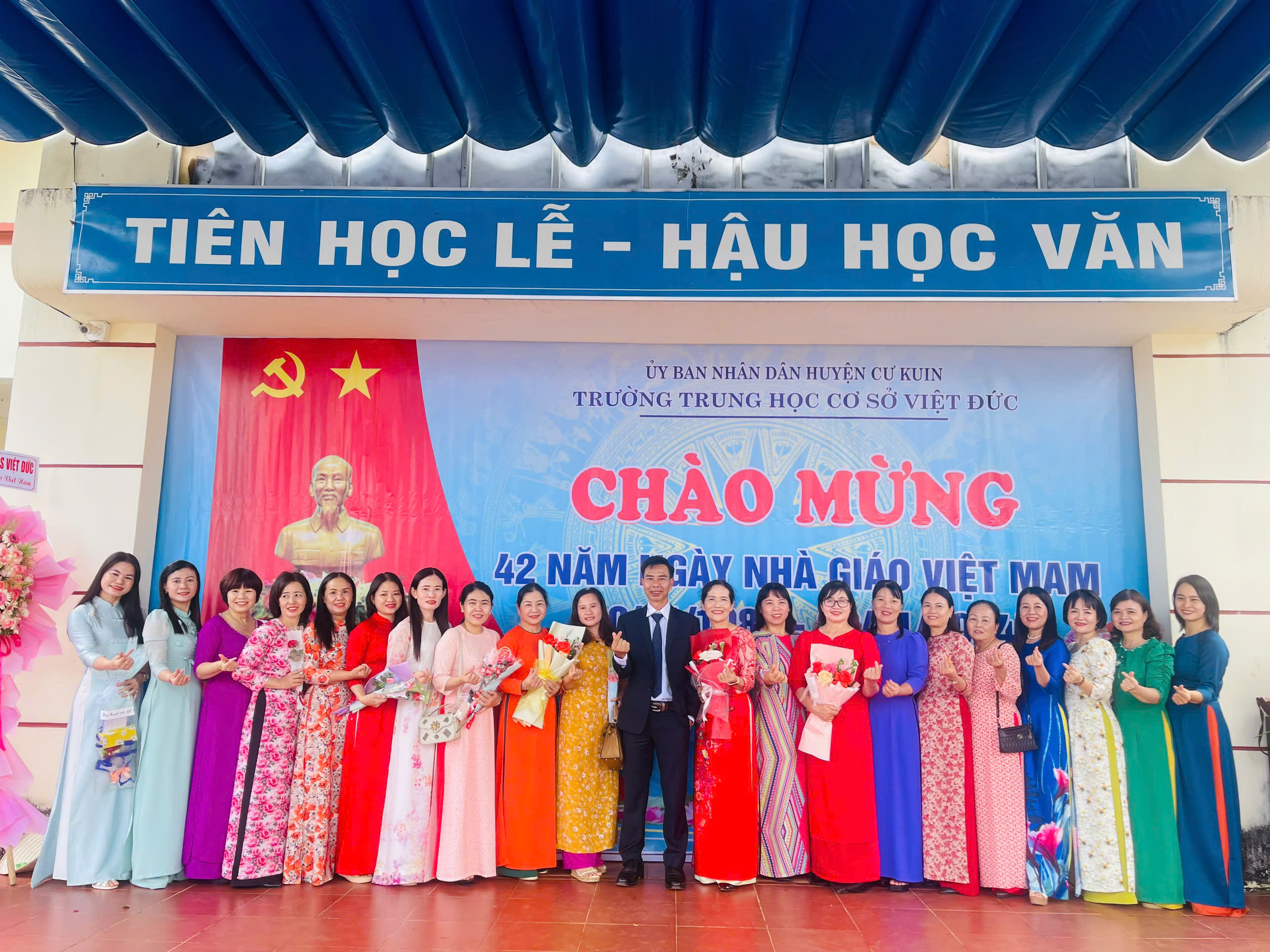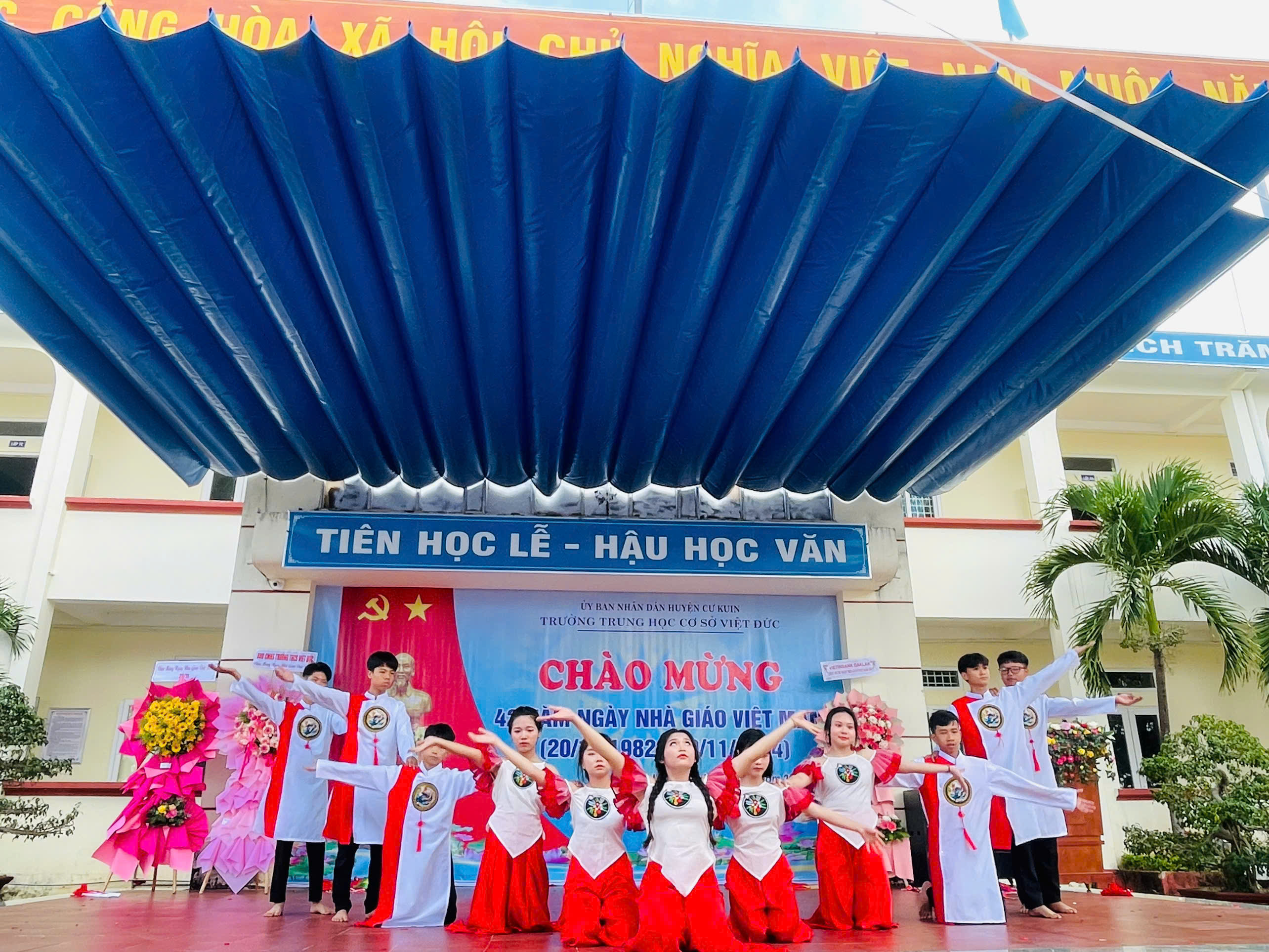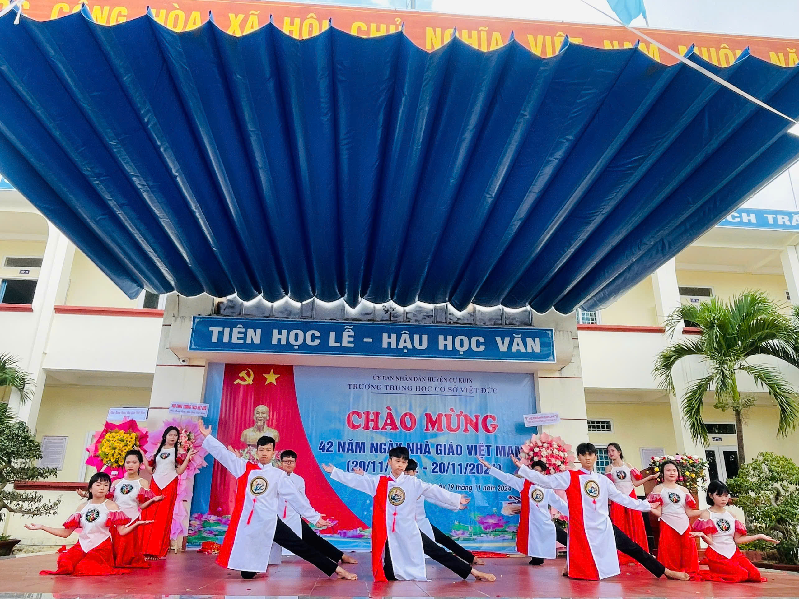 Hòa trong không khí rộn ràng hân hoan cả nước kỷ niệm 42 năm ngày Nhà giáo Việt Nam 20/11, trong những ngày qua, trường THCS Việt Đức của chúng ta đã tổ chức rất nhiều hoạt động sôi nổi trong nhà trường. Về phía học sinh, các hoạt động thi đua hoa điểm 9,10, thi đua thực hiện tốt nề nếp, hội thi văn nghệ, thi tuyên truyền măng non,… đã được diễn ra thành công tốt đẹp. Về phía CBGV- NV nhà trường nhằm chào mừng ngày nhà giáo VN 20-11 các thầy cô đã tích cực thực hiện tốt nhiệm vụ được giao, tích cực dự giờ thăm lớp, thao giảng, chuyên đề, hôi thao cấp huyện thi đua lập thành tích cao nhất chào mừng ngày nhà giáo việt Nam. Đây cũng là dịp để chúng ta cùng ôn lại chặng đường hoạt động công tác giáo dục đầy ắp kỷ niệm và chan hòa tình cảm.