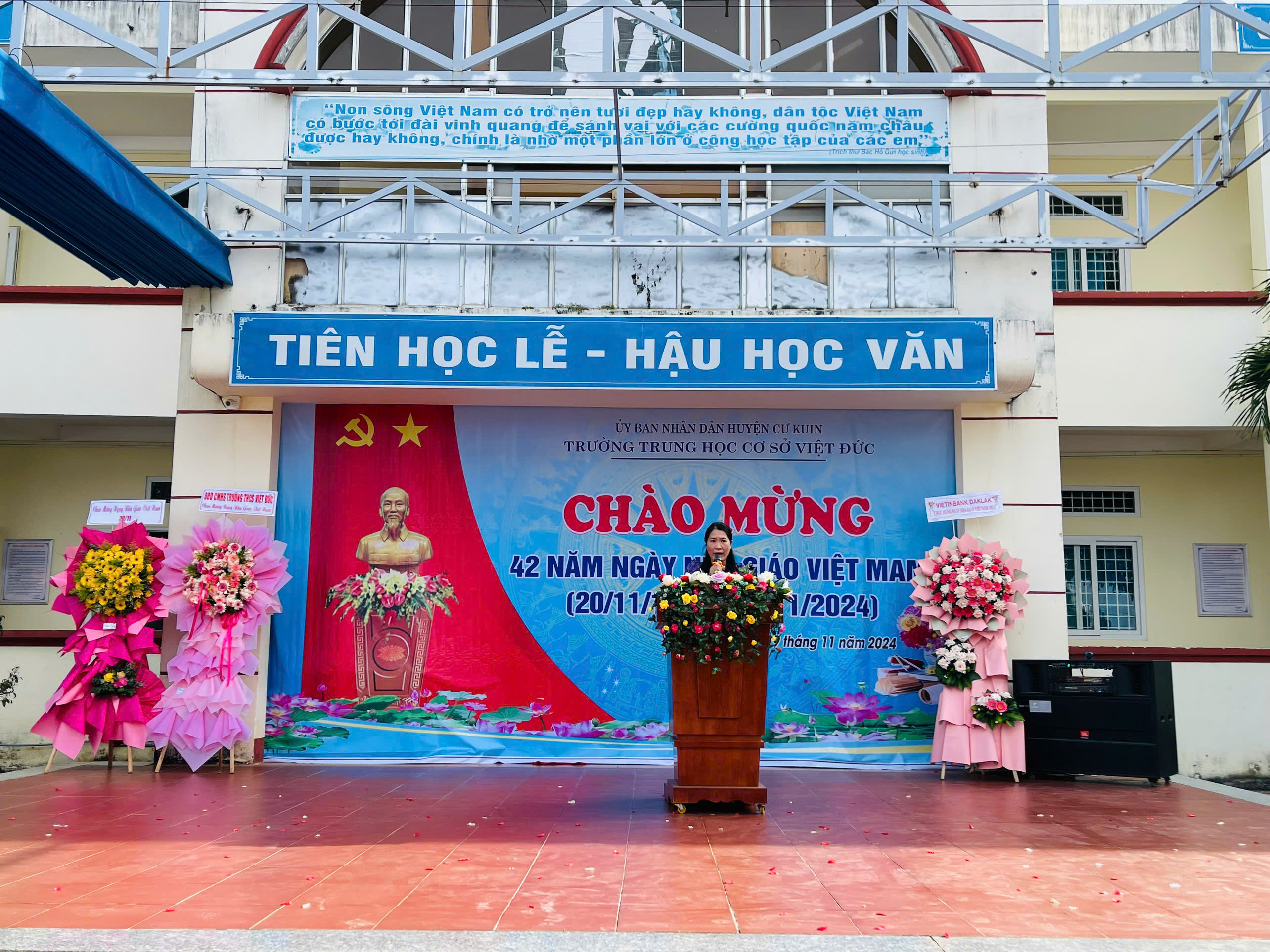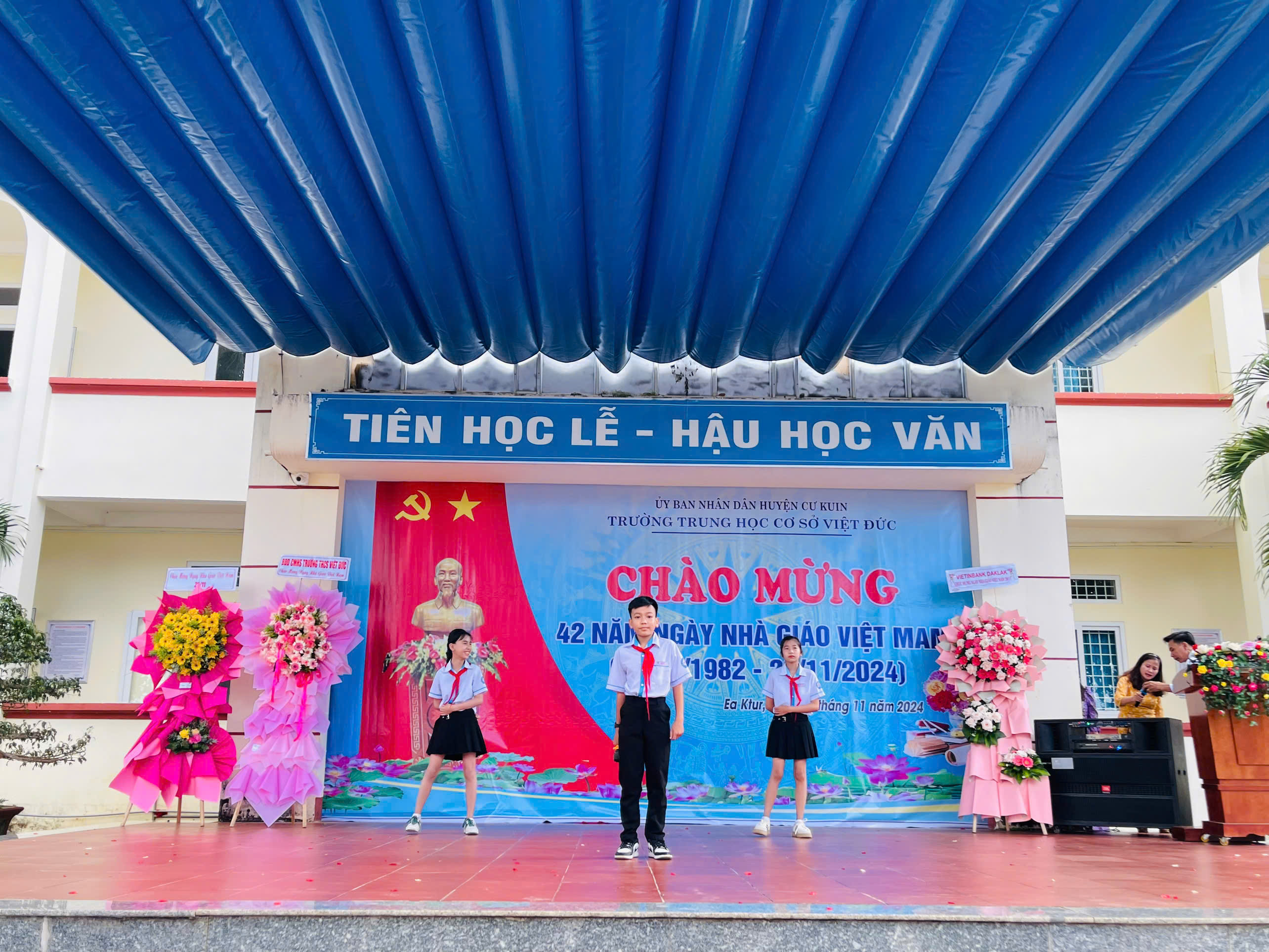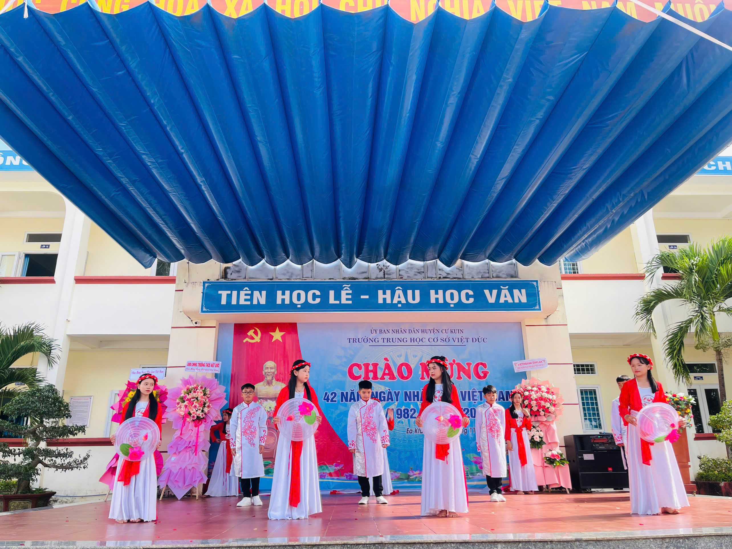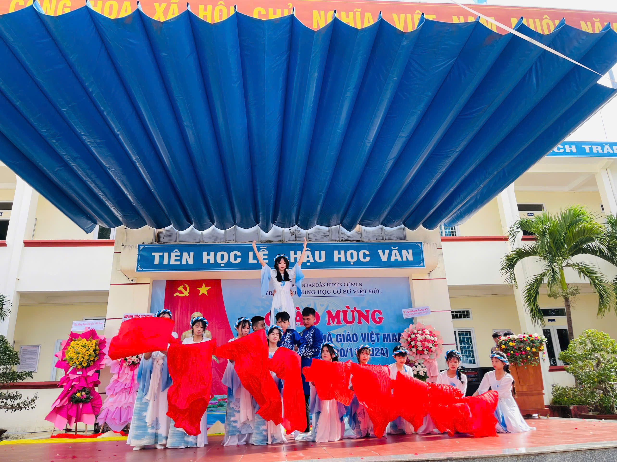 Hòa trong không khí rộn ràng hân hoan cả nước kỷ niệm 42 năm ngày Nhà giáo Việt Nam 20/11, trong những ngày qua, trường THCS Việt Đức của chúng ta đã tổ chức rất nhiều hoạt động sôi nổi trong nhà trường. Về phía học sinh, các hoạt động thi đua hoa điểm 9,10, thi đua thực hiện tốt nề nếp, hội thi văn nghệ, thi tuyên truyền măng non,… đã được diễn ra thành công tốt đẹp. Về phía CBGV- NV nhà trường nhằm chào mừng ngày nhà giáo VN 20-11 các thầy cô đã tích cực thực hiện tốt nhiệm vụ được giao, tích cực dự giờ thăm lớp, thao giảng, chuyên đề, hôi thao cấp huyện thi đua lập thành tích cao nhất chào mừng ngày nhà giáo việt Nam. Đây cũng là dịp để chúng ta cùng ôn lại chặng đường hoạt động công tác giáo dục đầy ắp kỷ niệm và chan hòa tình cảm.