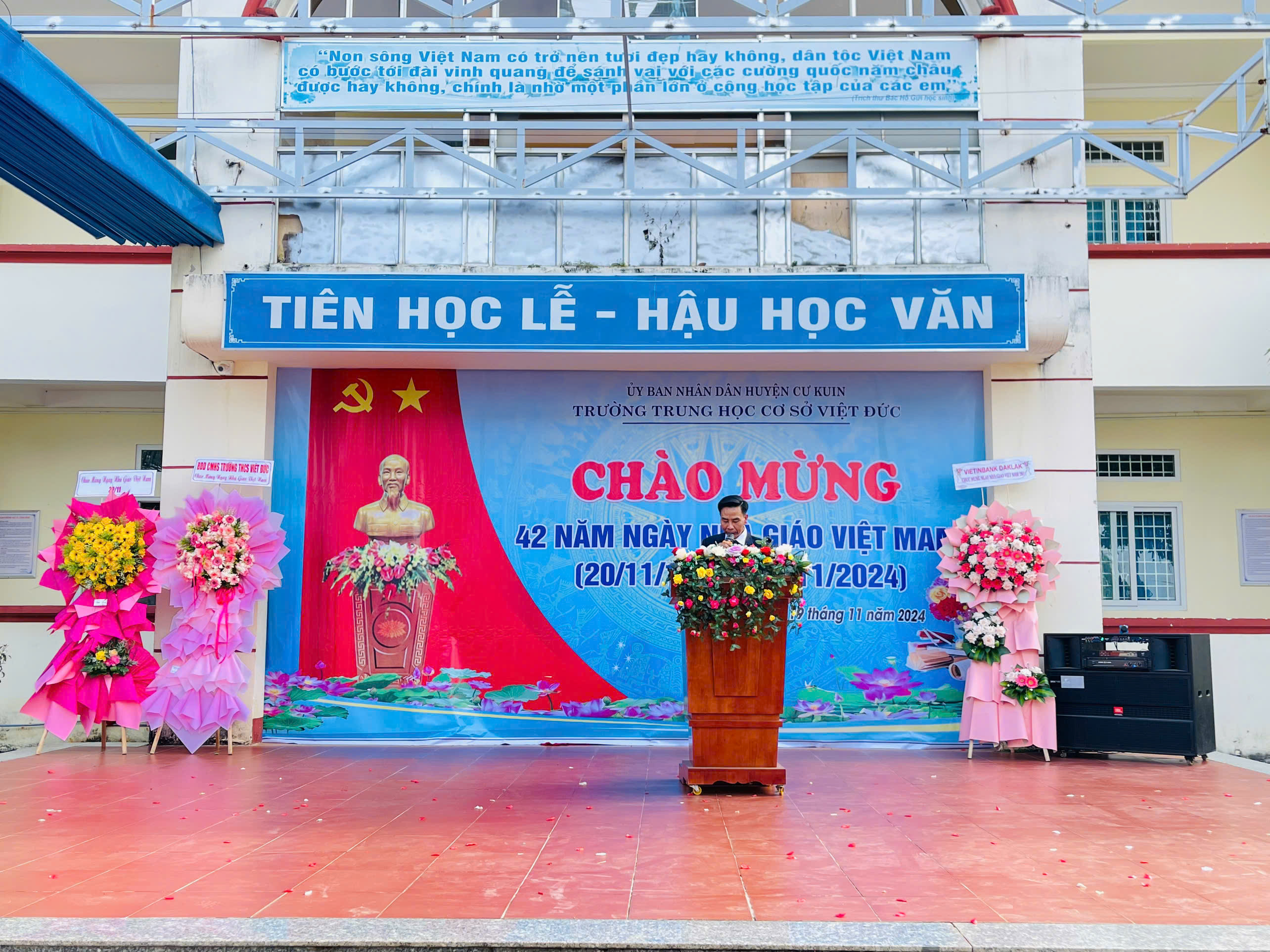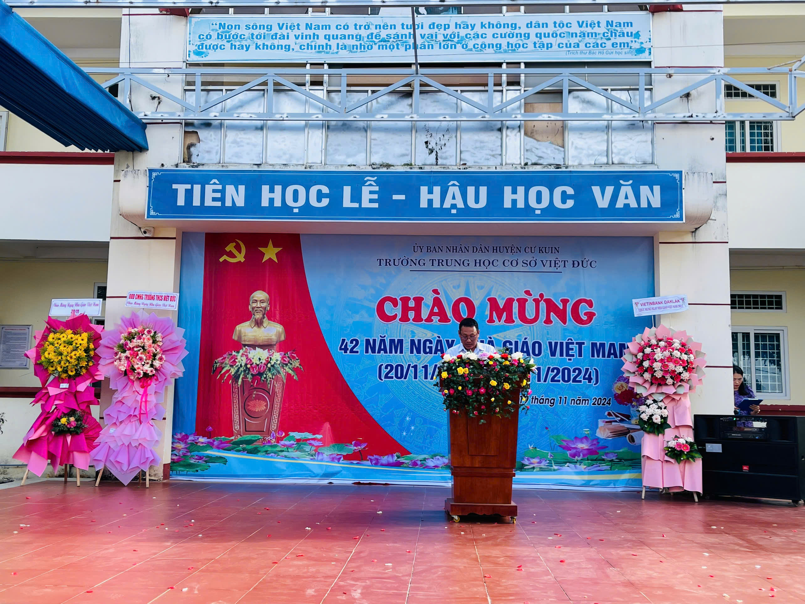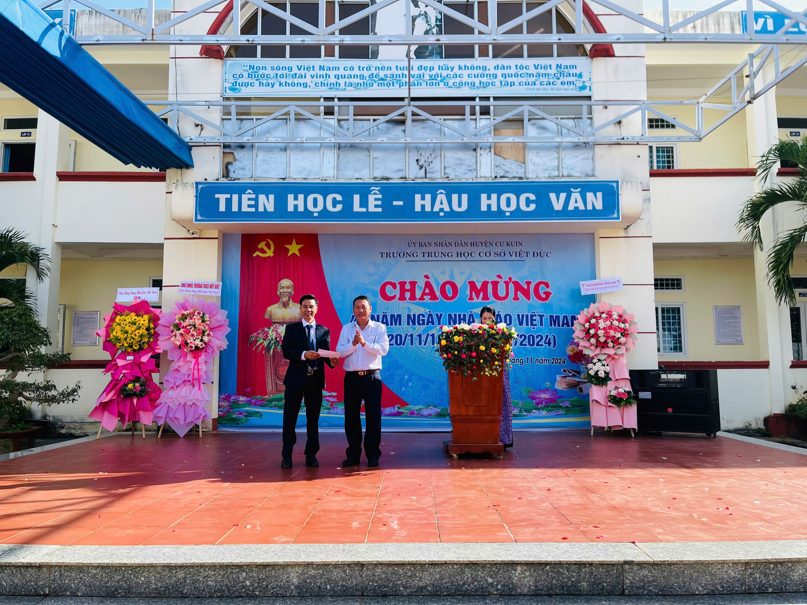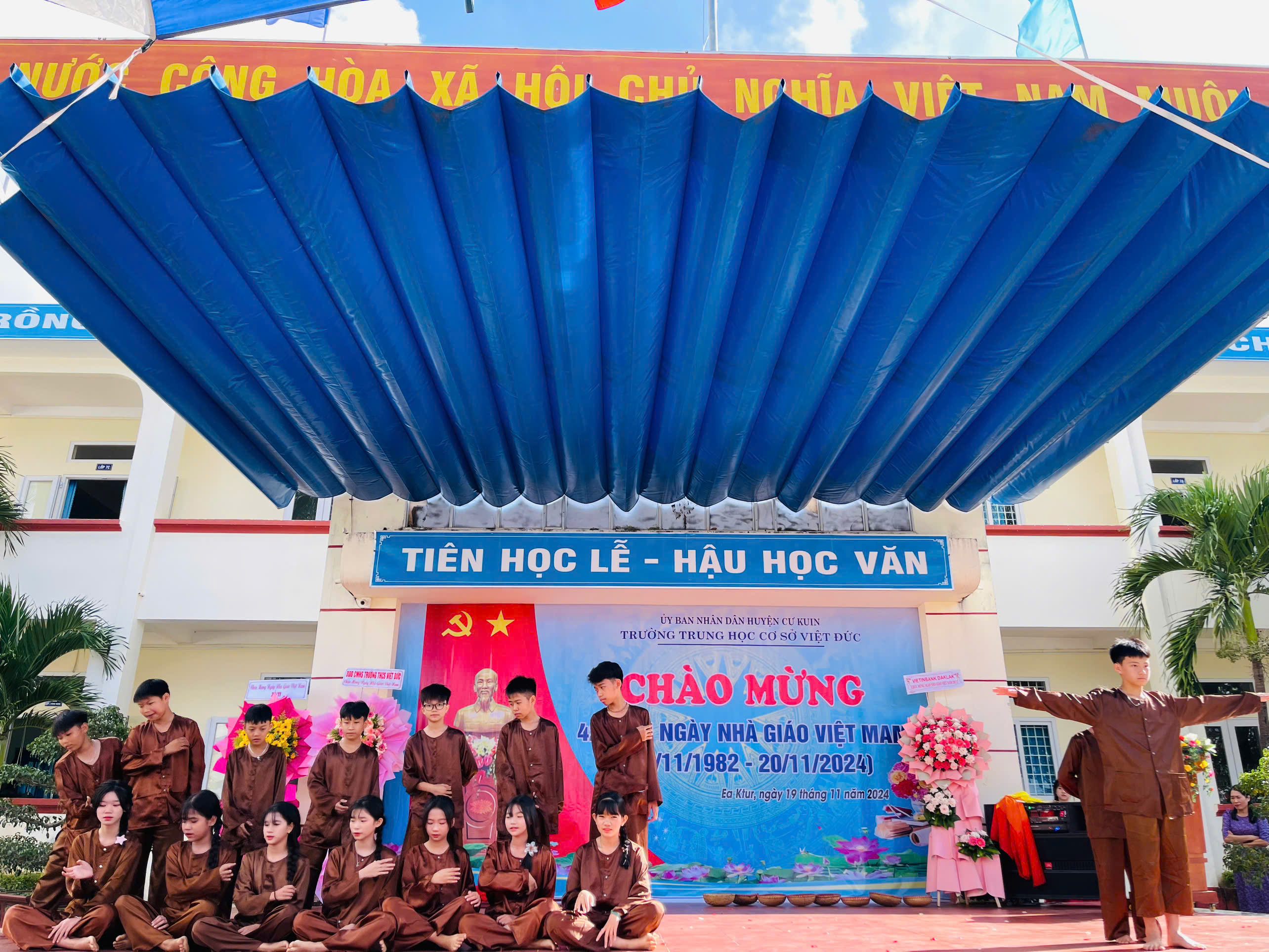 Hòa trong không khí rộn ràng hân hoan cả nước kỷ niệm 42 năm ngày Nhà giáo Việt Nam 20/11, trong những ngày qua, trường THCS Việt Đức của chúng ta đã tổ chức rất nhiều hoạt động sôi nổi trong nhà trường. Về phía học sinh, các hoạt động thi đua hoa điểm 9,10, thi đua thực hiện tốt nề nếp, hội thi văn nghệ, thi tuyên truyền măng non,… đã được diễn ra thành công tốt đẹp. Về phía CBGV- NV nhà trường nhằm chào mừng ngày nhà giáo VN 20-11 các thầy cô đã tích cực thực hiện tốt nhiệm vụ được giao, tích cực dự giờ thăm lớp, thao giảng, chuyên đề, hôi thao cấp huyện thi đua lập thành tích cao nhất chào mừng ngày nhà giáo việt Nam. Đây cũng là dịp để chúng ta cùng ôn lại chặng đường hoạt động công tác giáo dục đầy ắp kỷ niệm và chan hòa tình cảm.